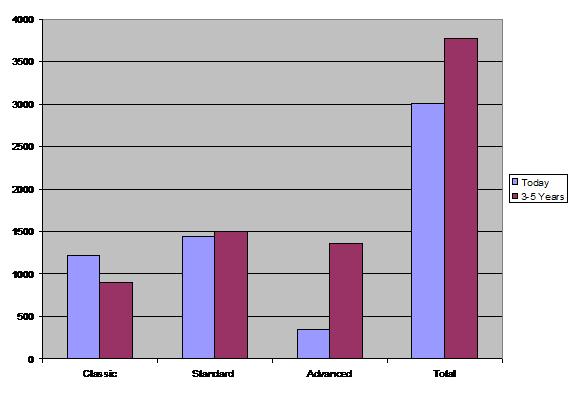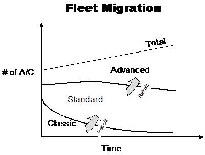 Figure 2. Current and Projected Number of Air Carrier Classic, Standard, and Advanced Aircraft Types.