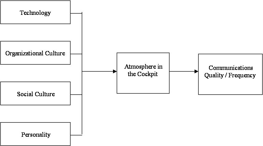 Figure 2 demonstrates how culture can greatly affect the atmosphere in the cockpit. This atmosphere then influences the frequency and quality of communication between individuals. The quality and frequency of communication within the cockpit are also usually indicative of the quality and frequency of communication between the cockpit and others involved in flight operations (e.g., controllers, cabin crew). A crew that is communicating well is typically working well together.