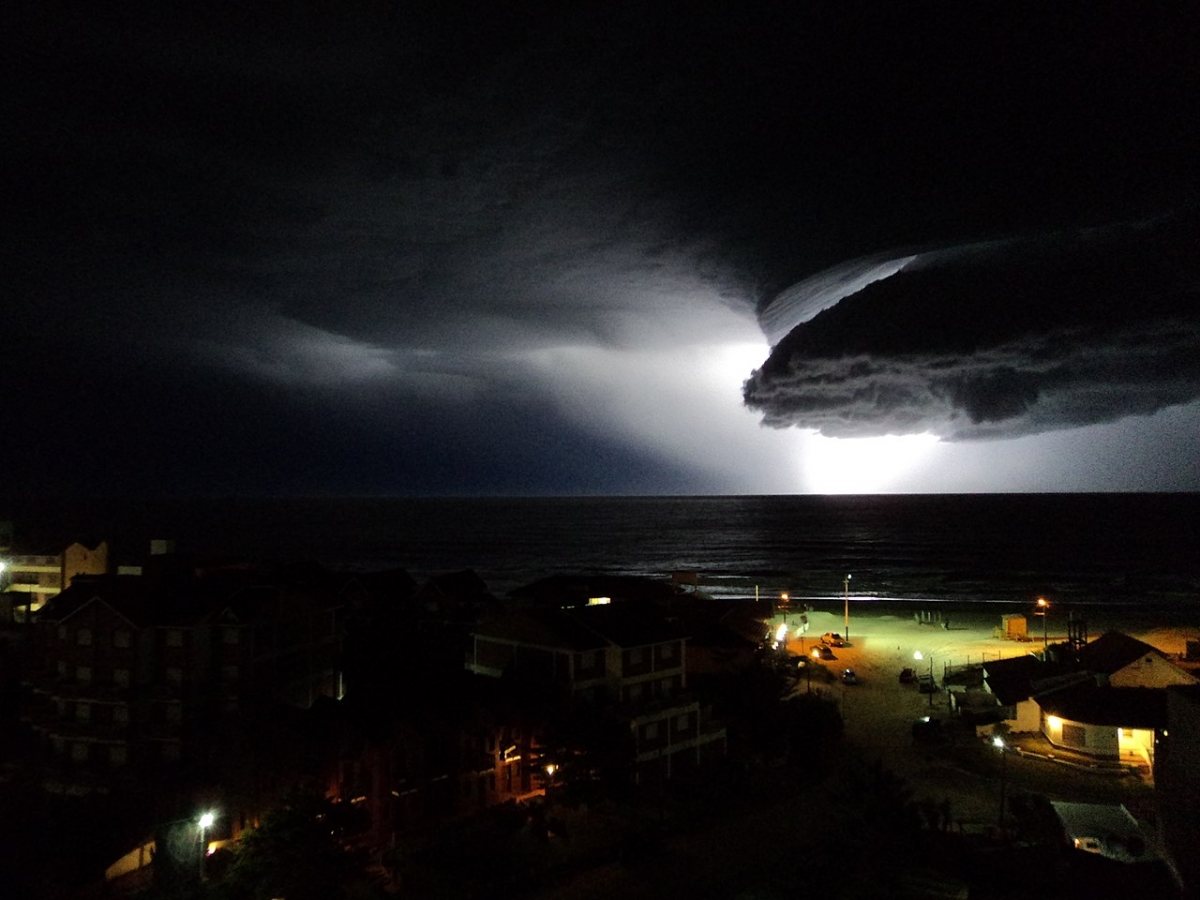 Storm front over the sea, viewed from the SE with lightning and thunder during an episode of Sudestada. Villa Gesell, Province of Buenos Aires, Argentina. Source: Wikicommons (Fernando de Gorocica, 2011)