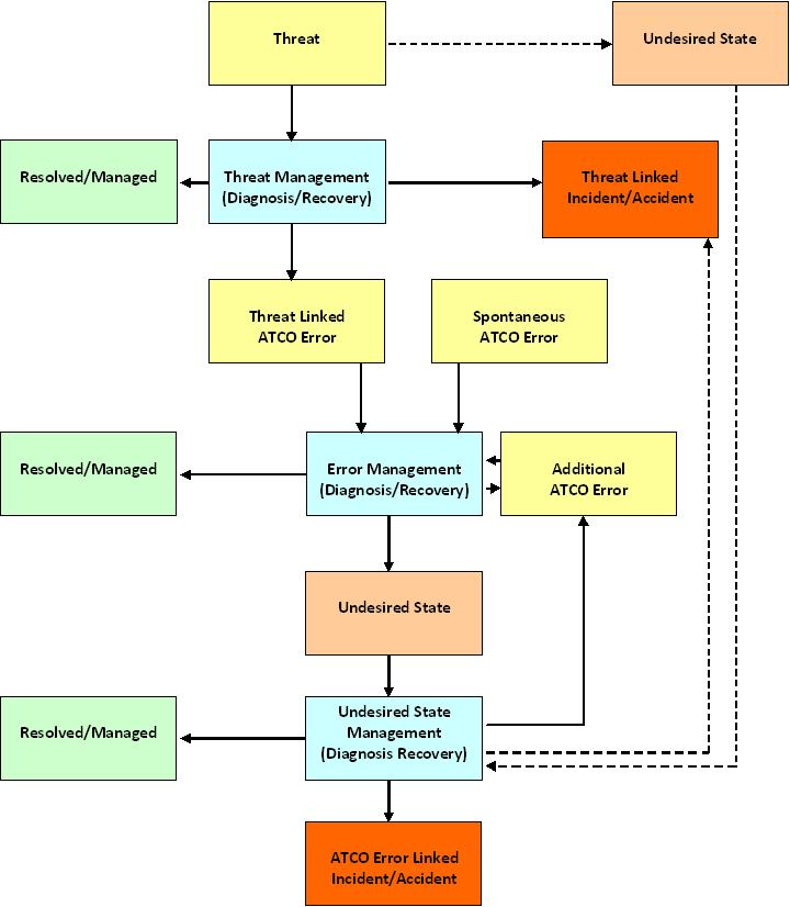 Threat management is a building block to error management and undesired states management. Archival data on flight deck operations demonstrates that mis-managed threats are frequently linked to flight crew errors, which in turn are often linked to undesired states. However, the threat-error-undesired states relationship is not necessarily straightforward and it may not always be possible to establish a linear relationship, or one-to-one linkage between threats, errors and undesired states. There are two important caveats in the TEM Framework, strictly speaking:
