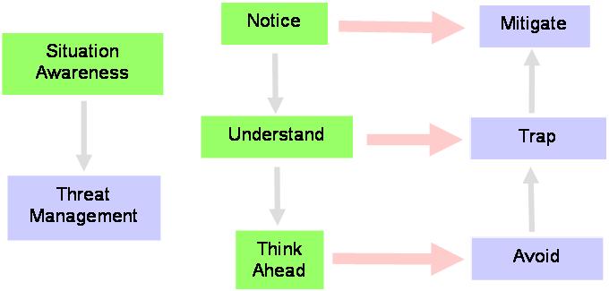 The project prepared an inventory of skills to develop a structure of well-identified competencies from which skill interrelationships could be made clear. Situational awareness and threat management skills were each broken down into four competencies that reflect iterative steps in the thinking process.