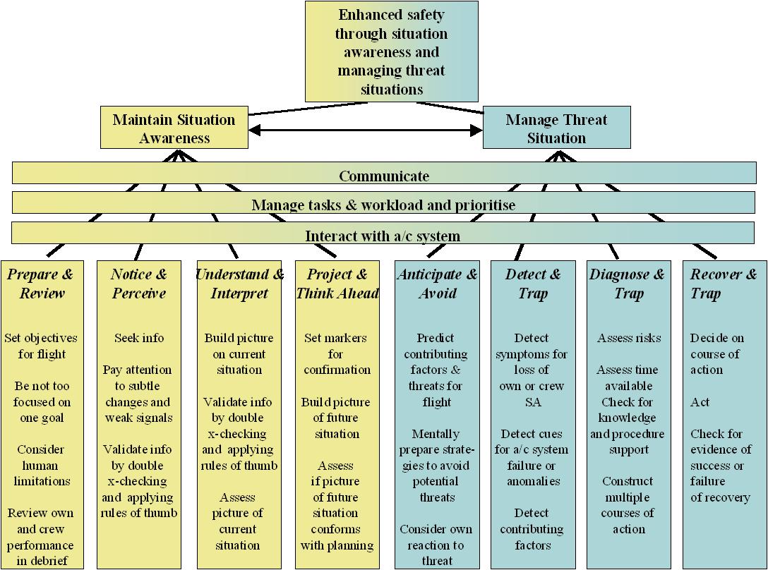 - Operating: Threat management and situation control; operating under stress, turbulent signals, signs of loss of situational awareness