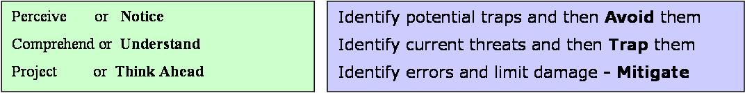 | Tips to focus on situational adwareness levels: NUTA (notice, understand and think ahead)