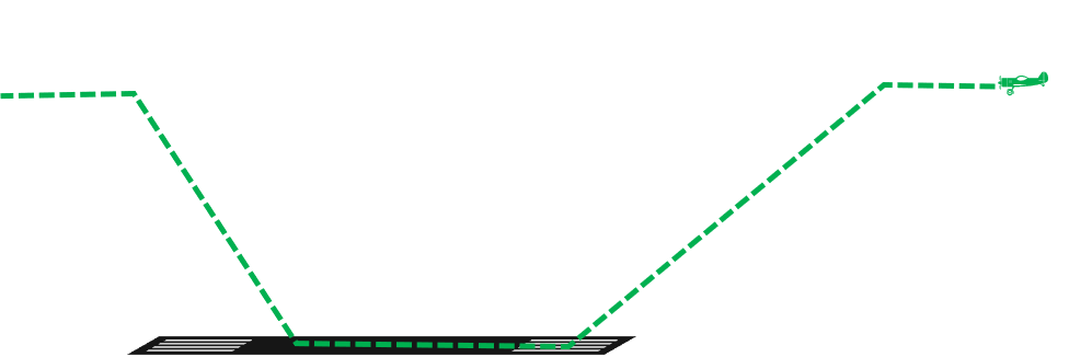 An example of the path of an aircraft performing a touch and go.