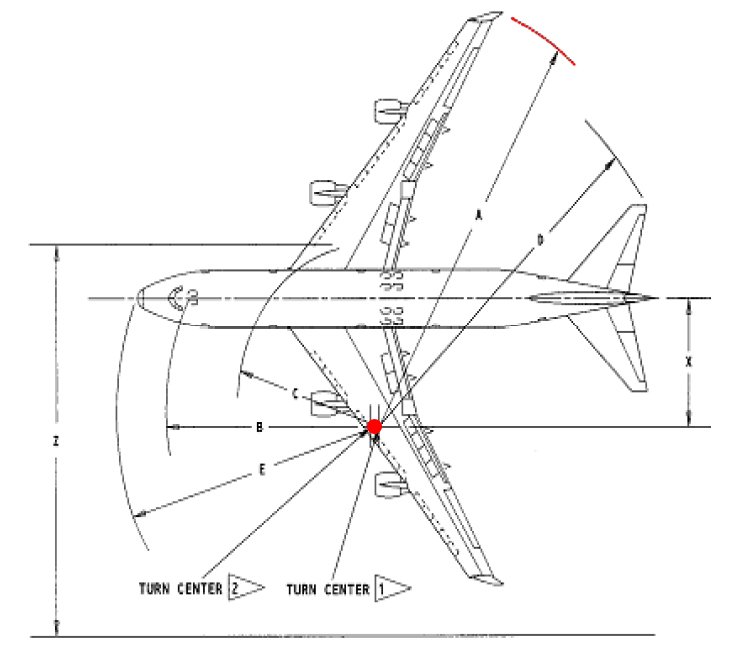 Wingtip growth is much greater than many people expect, and the outer wingtip also moves fast during a turn. Do not rely on helpful ‘thumbs up’ signs from anyone except qualified marshalling teams; other airport workers will not understand swept wing geometry issues.