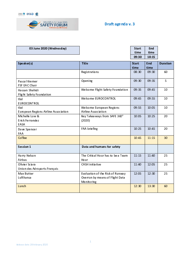 Agenda for the 2020 Safety Forum which is focused on Airport Surface Risk