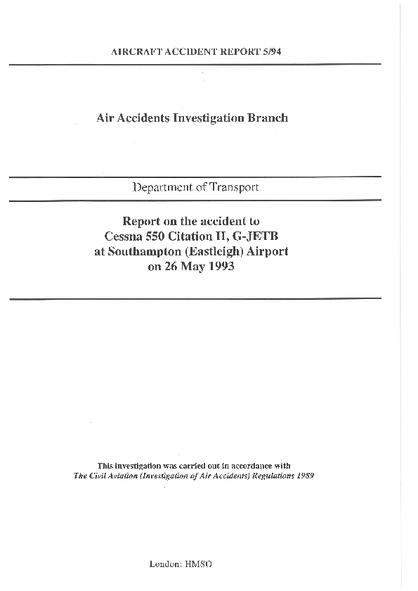 AAIB Aircaft Accident Report 5/94 - C550 Citation II, G-JETB, Southampton, 26 May 1993
