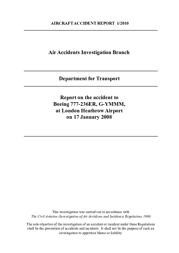 AAIB Aircraft Accident Report 1/2010 - Boeing 777-236ER, G-YMMM, at Lond