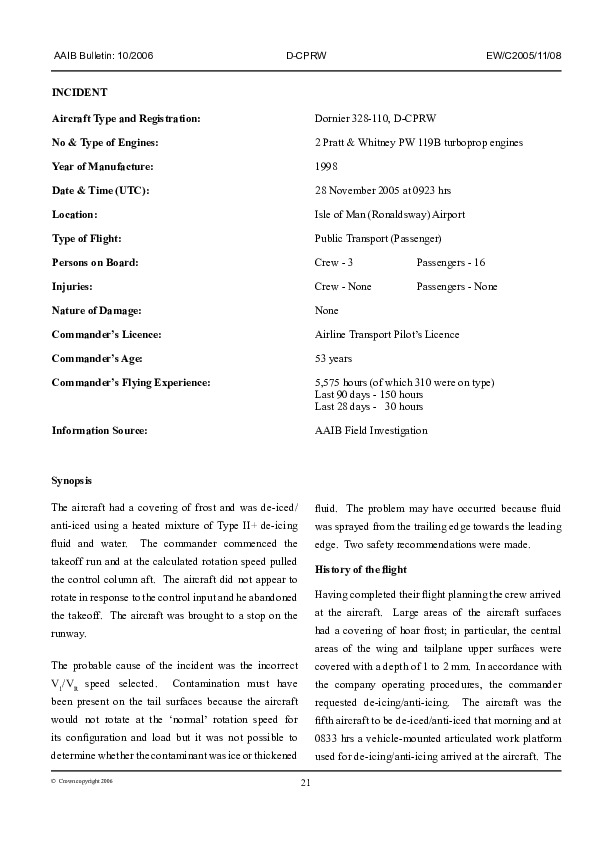 AAIB Bulletin 10/2006 EW/C2005/11/08, Dornier 328-110, D-CPRW, Isle of Man, 28 Nov. 2005