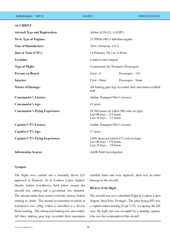 AAIB Bulletin 1/2013 EW/C2012/02/03, Airbus A319-111, G-EZFV, London Luton, 14 Feb 2012