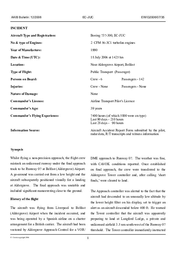 AAIB Bulletin 12/2006 EW/G2006/07/35, Boeing 737-300, EC-JUC, Belfast Aldergrove, 18 Jul 2006