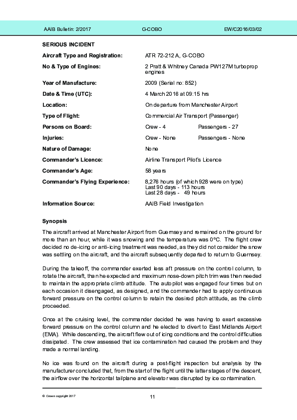 AAIB Bulletin: 2/2017, AT72 (G-COBO) vicinity Manchester UK, 4 March 2015
