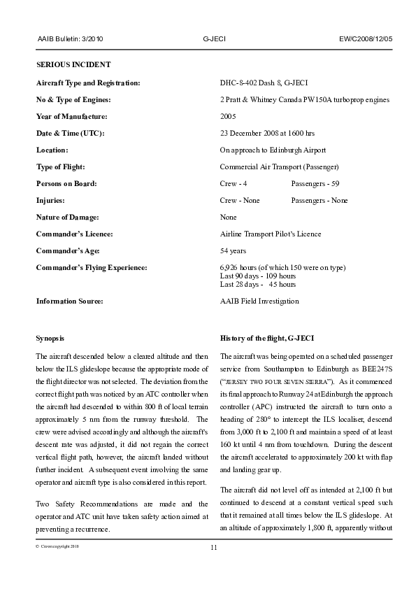 AAIB Bulletin 3/2010 EW/C2008/12/05, DHC-8-402, Dash 8, G-JECI, Edinburgh, 23 Dec 2008
