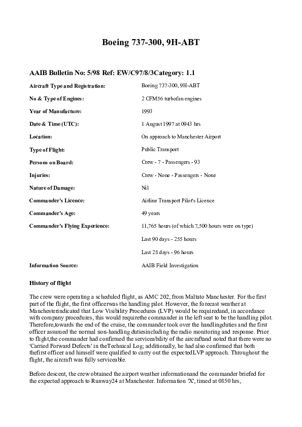AAIB Bulletin 5/98 EW/C97/8/3 Boeing 737-300, 9H-ABT, Manchester Airport, 1 Aug 1997