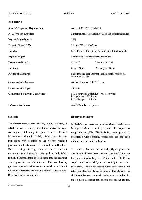 AAIB Bulletin 6/2009 EW/C2008/07/05, Airbus A321-231, G-MARA, Manchester, 28 Jul 2008