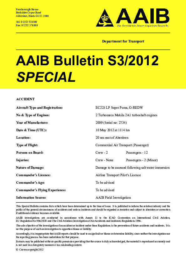 AAIB Bulletin S3/2012 Special, AS3B accident, near Aberdeen UK, May 2012