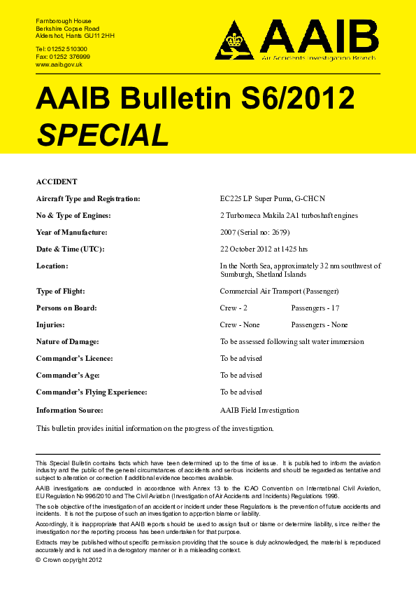 AAIB Bulletin S6/2012 Special, AS3B MGB lubrication system failure, North Sea, 22 Oct 2012