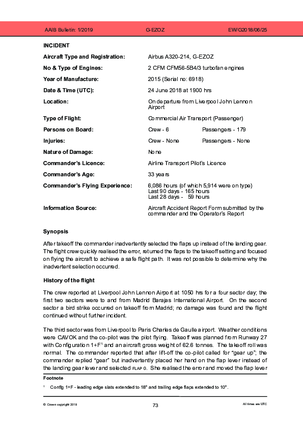 AAIB Bulleting 1/2019 G-EZOZ A320 vicinity Liverpool UK, 24 June 2018