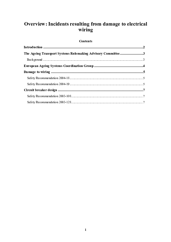 Ageing and maintenance related wiring incidents continue to occur despite, generally, an enhanced awareness of the problems associated with aircraft wiring systems. Four such incidents are presented together in this issue of the AAIB Bulletin; all feature damage to electrical wiring and identify similar causal factors. Although each incident may be read as a stand alone report, this overview document draws together the common issues and makes four additional Safety Recommendations.