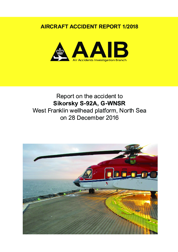 AAIR 1/2018 S92 (G-WNSR), West Franklin Wellhead Platform North Sea, 28 Dec 2016
