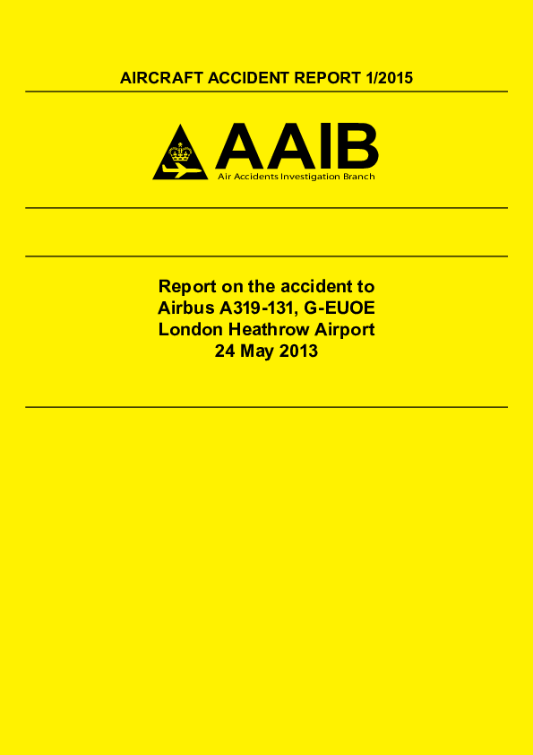 AAR 1/2015, A319, G-EUOE, fan cowl door loss, London Heathrow UK, 24 May 2013
