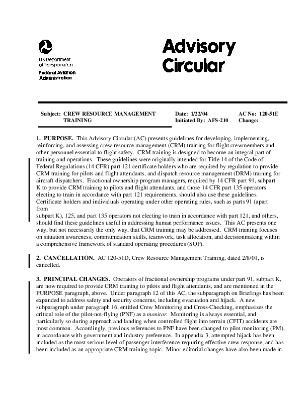 AC 120-51E - Crew Resource Management Training