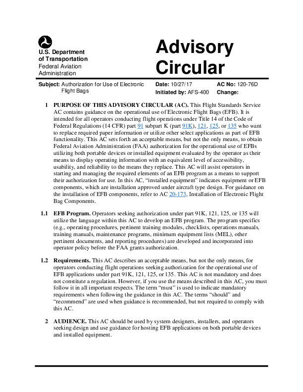 AC 120-76D - Guidelines for the Certification, Airworthiness, and Operational Use of EFBs