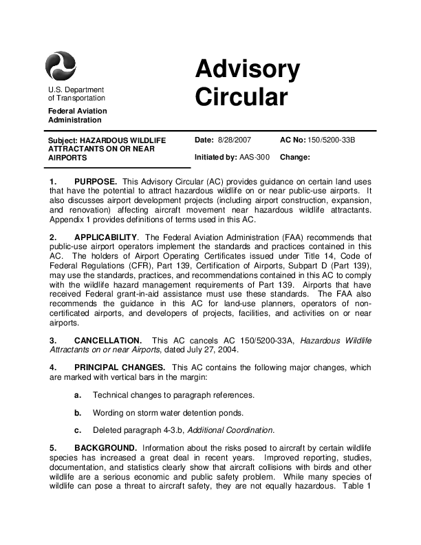 AC 150/5200-33B: Hazardous Wildlife Attractants on or near Airports