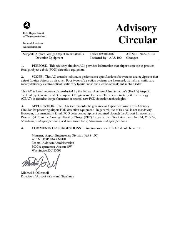 AC 150/5220-24 Airport Foreign Object Debris (FOD) Detection Equipment