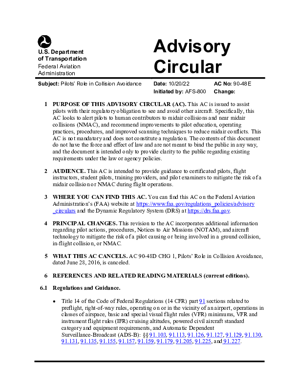 AC-90-48E, Pilots' Role in Collision Avoidance