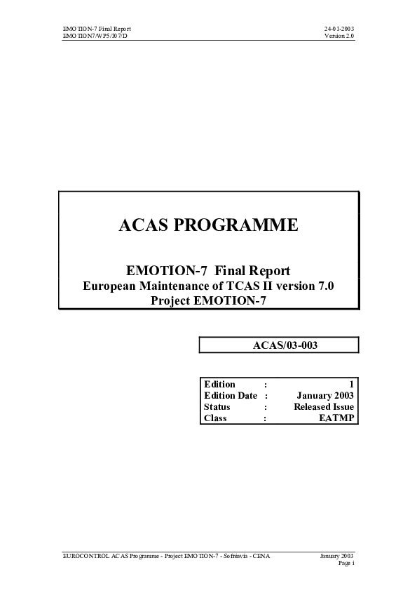 ACAS: EMOTION-7 Final Report European Maintenance of TCAS II version 7.0 Project EMOTION-7