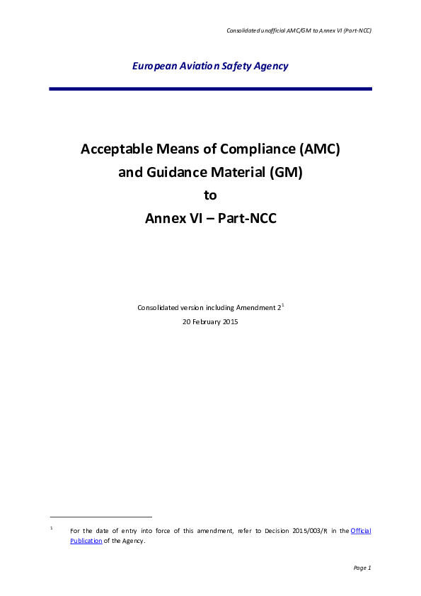 Acceptable Means of Compliance and Guidance Material to Part-NCC of IR-OPS