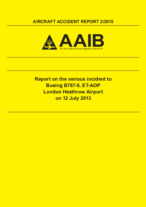 Accident Report 2/2015 on the serious incident to Boeing B787-8, ET-AOP London Heathrow 12 July 2013