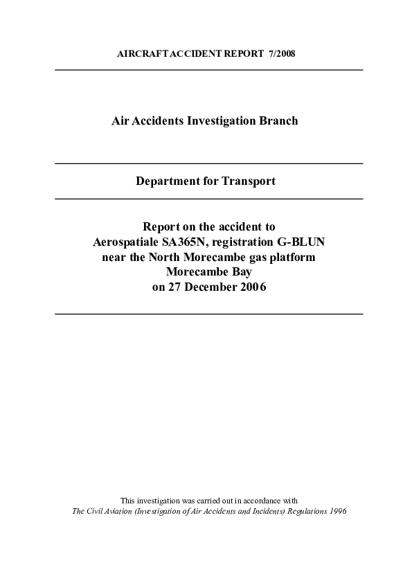 Accident Report 7/2008, EW/C2006/12/03, AS-365 Loss of control, Morecambe Bay, UK, 27 Dec. 2006