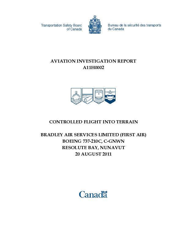 Accident Report A11H0002, B732 CFIT, Resolute Bay, Canada, 20 Aug 2011
