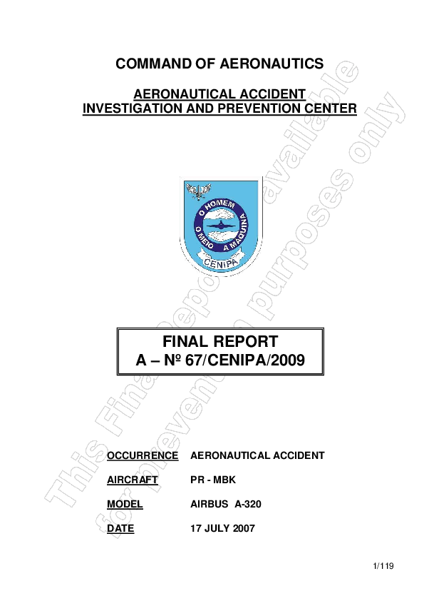 Accident Report AN67/CENIPA/2009, A320 Runway excursion, Congohonas Brasil, 17 July 2007