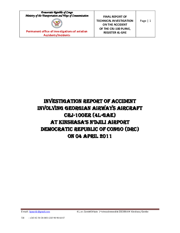 Accident Report CRJ1, loss of control, Kinshasa Congo, 4 Apr. 2011