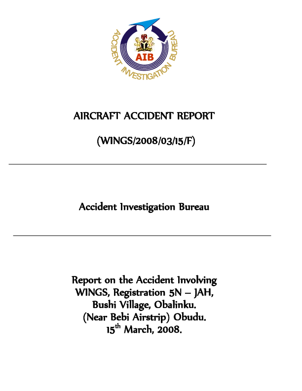 Accident Report WINGS/2008/03/15/F, B190 5NJAH, Bushi Village near Bebi Nigeria, 15 March 2008