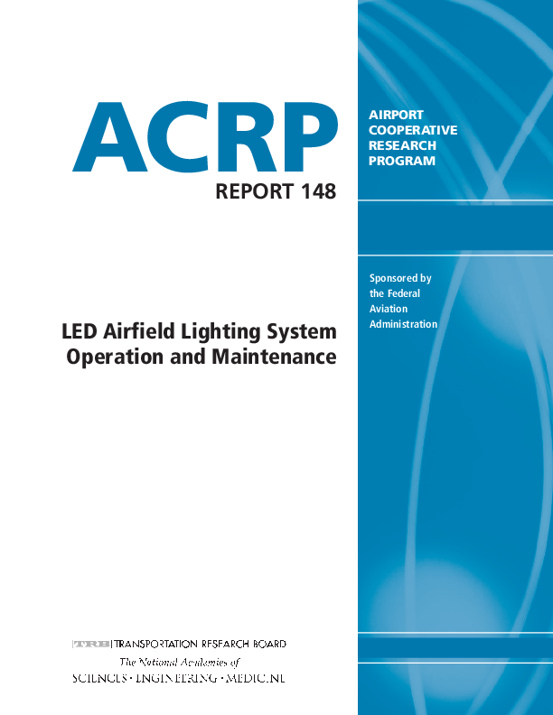 ACRP Report 148: LED Airfield Lighting System Operation and Maintenance provides guidance for operating and maintaining light-emitting diode (LED) airfield ground lighting systems, including taxi guidance signs, elevated light fixtures, and in-pavement light fixtures. The guidebook will be of particular interest to airport operations and maintenance (O&M) practitioners seeking to maximize the potential O&M benefits that LED lighting offers as they integrate and/or replace older airfield lighting with this new technology.
