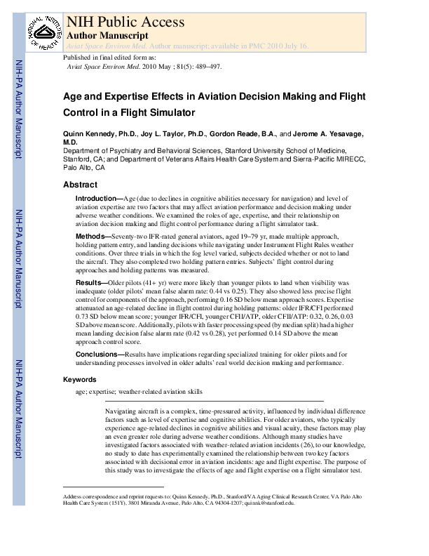 Age and Expertise Effects in Aviation Decision Making and Flight Control in a Flight Simulator