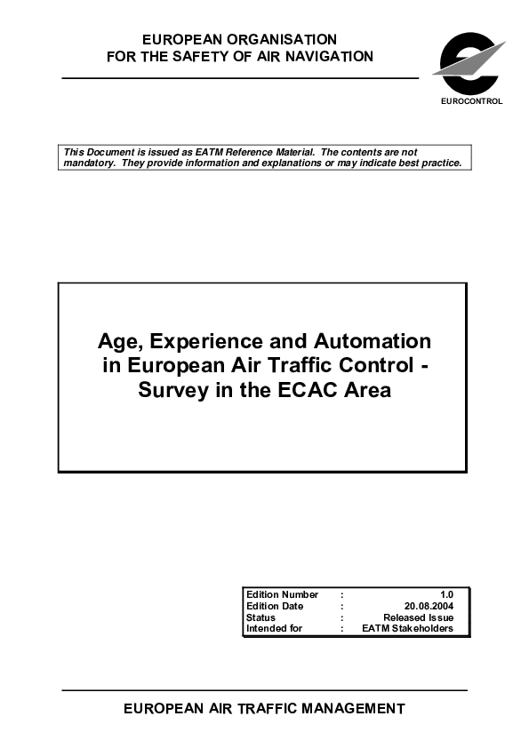 This document describes a survey conducted in the European Civil Aviation Conference (ECAC) Area on the issue of age, experience and automation in European Air Traffic Management. It provides the theoretical background of the survey, based on cognitive ageing and expertise research.