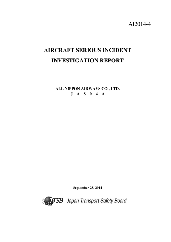 AI2014-4 Aircraft Serious Incident Investigation Report...JA804A