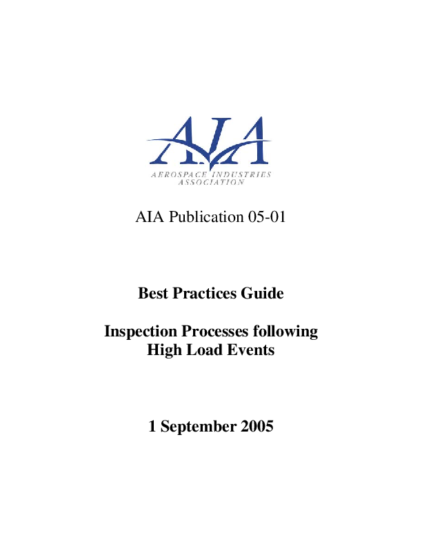 AIA Publication 05-01, Inspection Processes following High Load Events (Best practices guide)