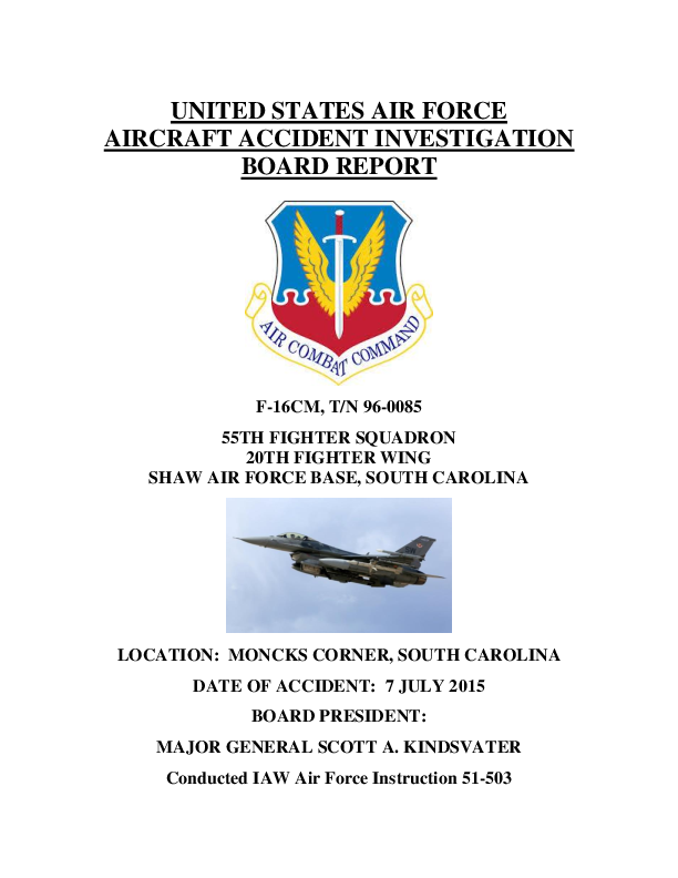 AIB Report F16 and C150 Mid-Air Collision vicinity Berkeley County SC USA, 7 July 2015
