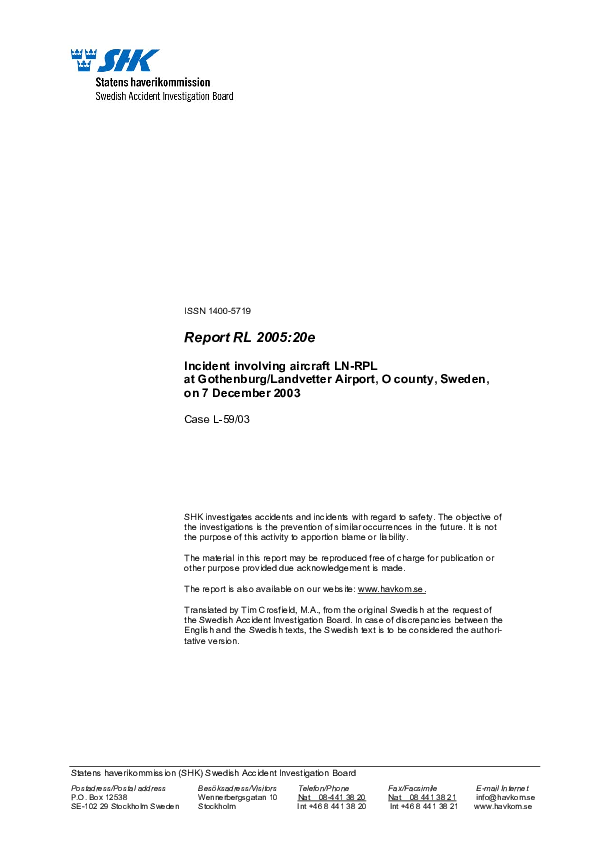 AIB - Report RL 2005:20e - B738 premature rotation, Gothenburg/Landvetter Airport, 7 December 2003