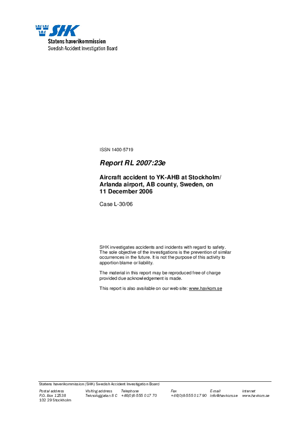 AIB Report RL 2007:23e, B74S collision with airbridge, Stockholm Arlanda, 11 Dec 2006