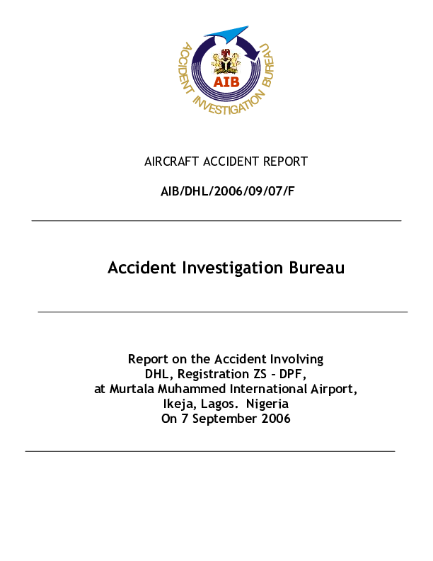 AIB/DHL/2006/09/07/F, B722 runway excursion, Lagos Nigeria, 7 Sept 2006