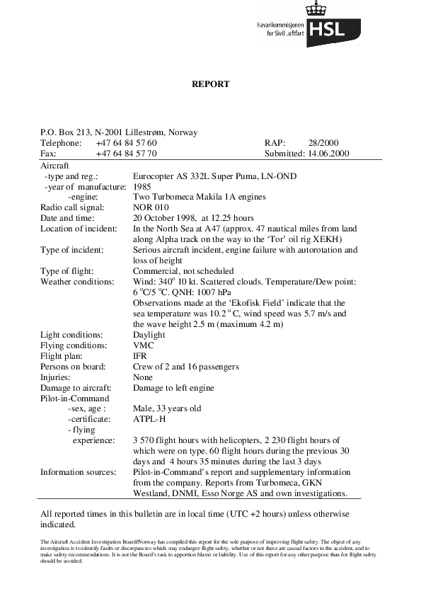 AIBN -Report 28/2000, Norsk Eurocopter AS 332L Super Puma, wrong malfunctioning engine identificatio