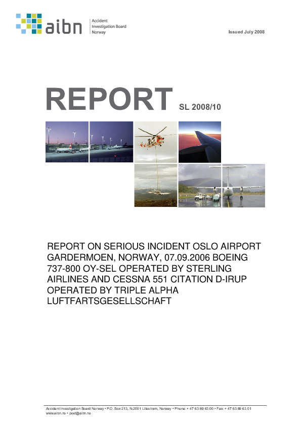 AIBN - Report SL 2008/10 - Serious Incident - runway incursion, C551/B738, Oslo Gardermoen 07 Sept 2
