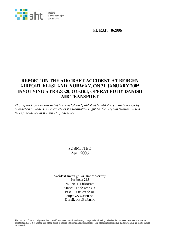 AIBN - SL RAP.: 8/2006., AT43 pitch control difficulties, Bergen, Norway 31 Jan 2005